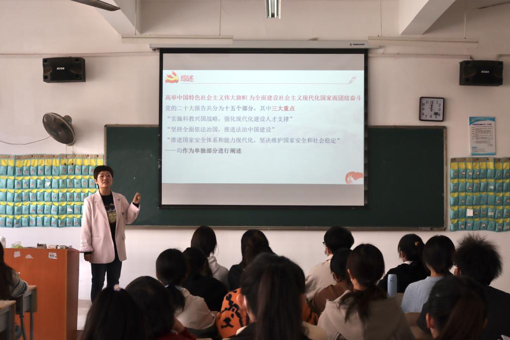 陈敏聚焦学习宣传党的二十大精神,深入讲解党的二十大召开的重要意义、党的二十大精神的核心要义与丰富内涵,以加强党的基本理论学习为重点,党课内容主旨围绕高举中国特色社会主义伟大旗帜为全面建设社会主义现代化国家而团结奋斗党的二十大、“实施科教兴国战略,强化现代化建设人才支撑”“坚持全面依法治国,推进法治中国建设”“推进国家安全体系和能力现代化,坚决维护国家安全和社会稳定”等几个重点进行阐述。