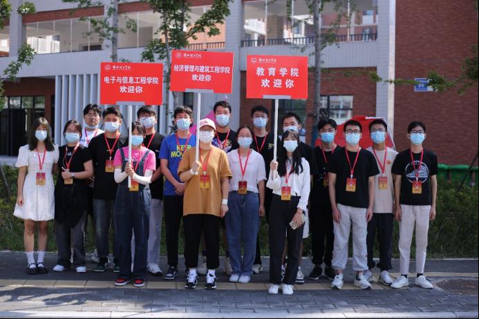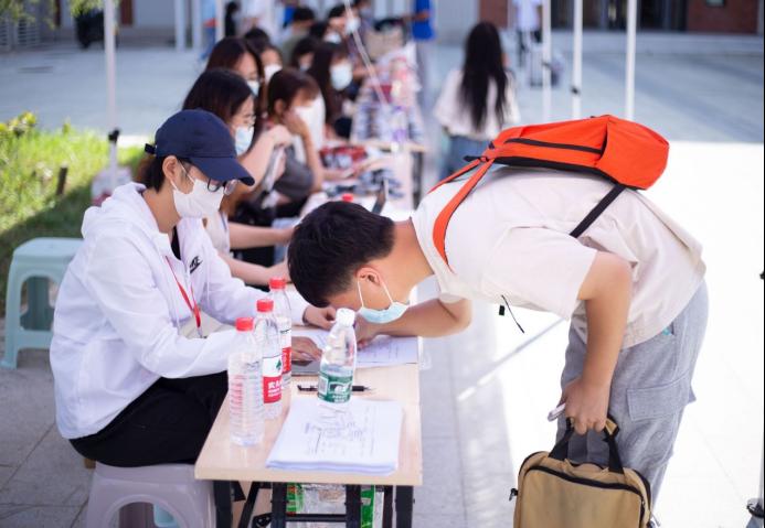 电子信息学院的新生跟随学校的大巴或摆渡车到达宿舍楼下,我们的志愿者会立即微笑的迎上去:“您好”,“欢迎来到学校”,并“抢”下新生手中沉重的行李,将新生带领到自己的宿舍,不辞辛苦的解答着他们提出的这种问题,引导新生办理入学手续、缴费、做核酸等。报道期间,因开云官网将迎新工作准备充分、组织得力,所以迎新工作一直井然有序的进行着。