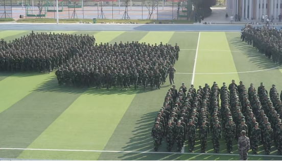 军体拳方队的男生动作强劲有力,拳拳相接,精神气十足,弓步冲拳、穿喉弹踢等一系列动作行云流水;匕首操方队的女生巾帼不让须眉,手持“利刃”披荆斩棘,弓步上刺、闪身反刺等动作规范整齐,声音响彻云霄;战术方阵的同学们动作迅速敏捷,协调一致,随着教官口令的下达不断变换队列战术,充分体现出电信学子严谨细致、刻苦耐劳的良好品质。