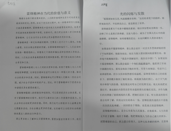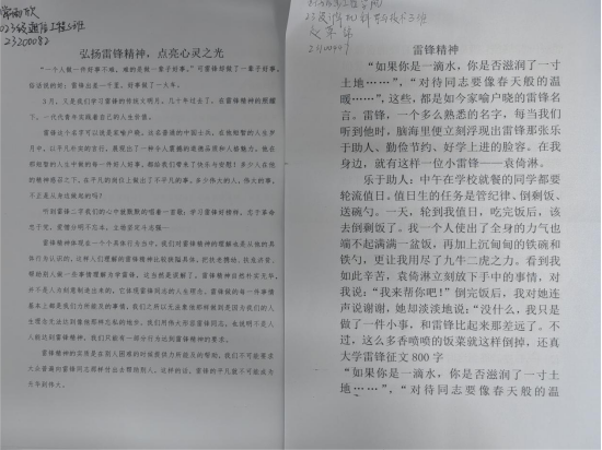 为加强学生对雷锋精神的理解,发扬中华民族传统美德,开云kaiyun体育组织“学习雷锋精神”主题征文、手抄报活动,同学们踊跃参加,共收到征文作品30余篇、手抄报作品20余幅,涌现出多幅优秀获奖作品,彰显了开云官网学子积极向上、热爱劳动的优良精神风貌。