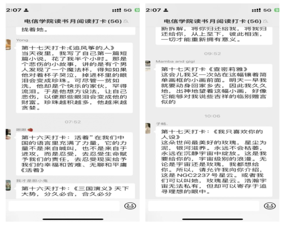 本次读书月打卡活动的顺利开展,不仅促进了同学们培养了良好的阅读习惯,还提供了一个展示和交流的平台,真正达到了在互动交流、经验分享中深化思想认识、共同学习进步的目的。