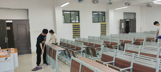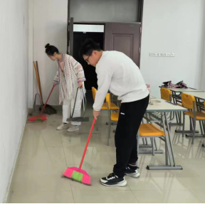 职、干劲满满,对教室内的卫生死角进行细致清理,将教室打扫的一尘不染。