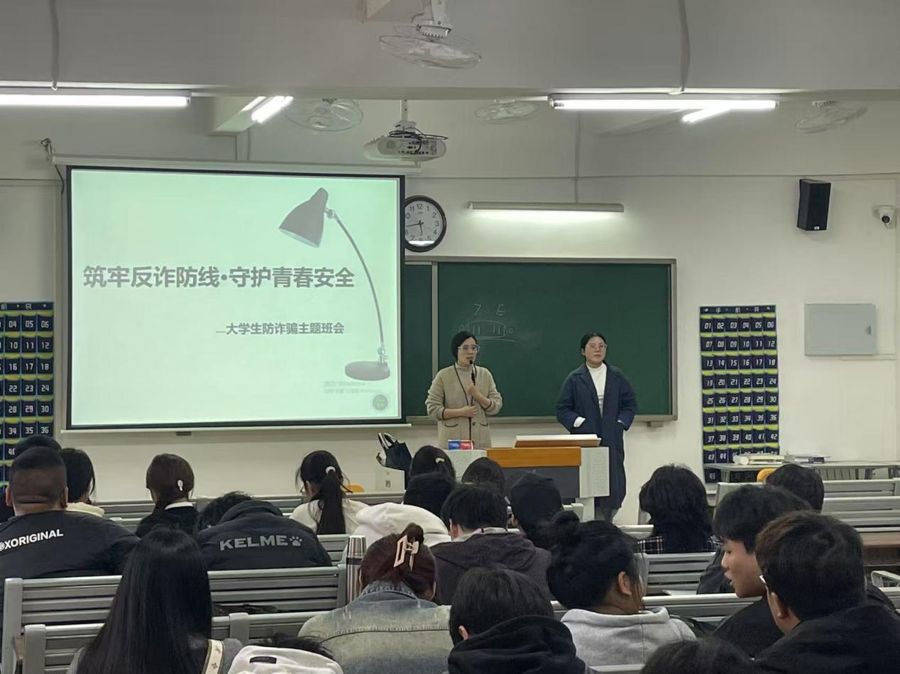 各班纷纷召开防电信诈骗主题班会。在班会上,班主任和辅导员们精心准备,通过PPT展示、案例分析等方式向同学们详细介绍了电信诈骗的常见形式,细致剖析诈骗手段。通过这些真实案例的分析,让同学们能够今后在面对类似情况时提高警惕,避免被骗。