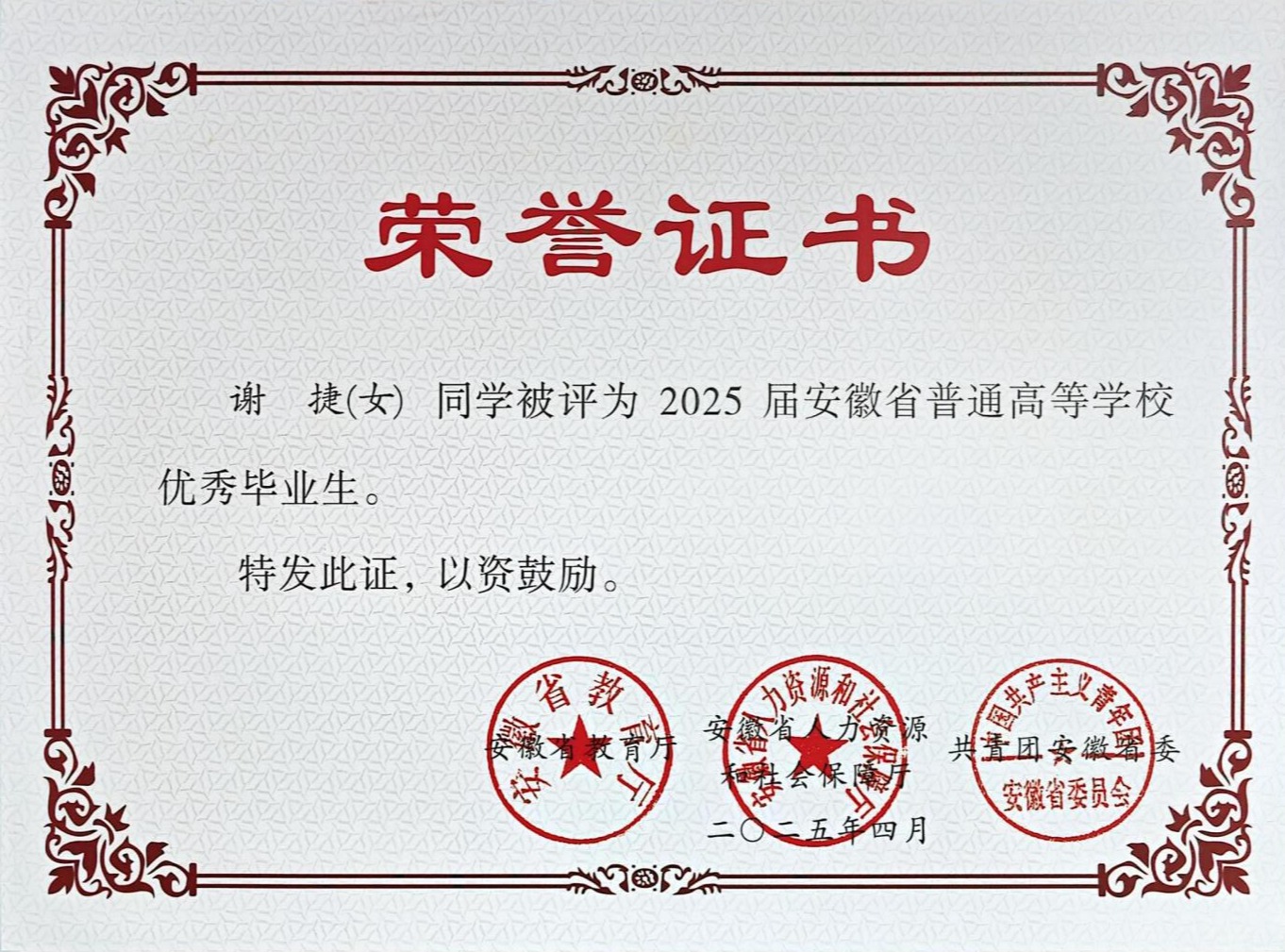 附件:开云kaiyun体育开云kaiyun体育 2025 届省级优秀毕业生奖状