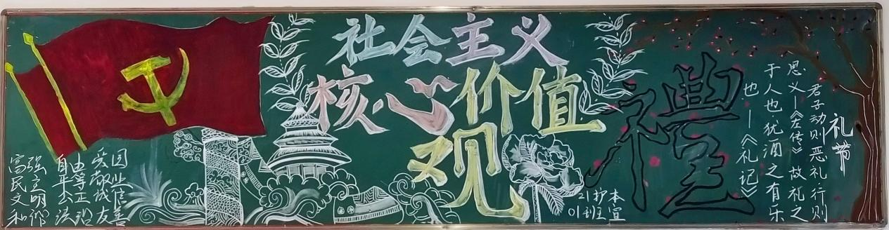 本次“践行社会主义核心价值观,争做文明守纪好青年”为主题的黑板报作品紧扣活动主题,内容健康丰富且具有教育意义,形式多样、突出爱国、彰显个人修养,全面宣传了社会主义核心价值观的思想,也表达了同学们自身对社会主义核心价值观的态度;一张张黑板报既达到了宣传、教育的目的,又为创造良好校园文化,创建和谐校园增添了亮丽的色彩。