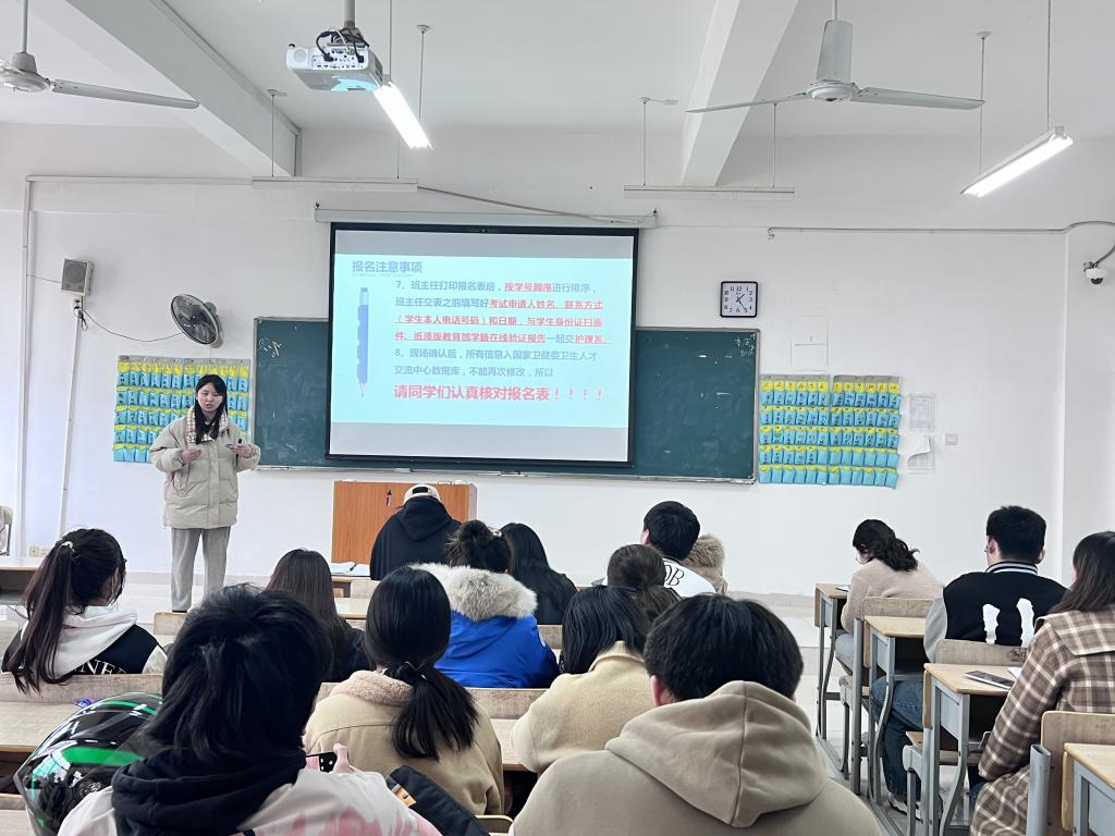 2024年全国护士执业资格考试报名工作将于2023年12月7日开始,根据江西省卫生健康委、江西省人力资源和社会保障厅《关于做好2024年度护士执业资格考试工作的通知》(赣卫人字〔2023〕36号)文件要求,为确保我院学生考试报名工作顺利进行,sunbet申搏官方网站在2023年12月6日中午12:50组织2021级高职护理班级、2022级中高职对接班级所有辅导员和各班班委代表参加了2024年护士执业资格考试报名指导培训。