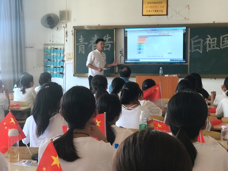 青年是国家的希望,对新时代中国青年来说,热爱祖国是立身之本、成才之基。新学期开学,为激励同学们的爱国热情,2019年9月19日,19高护一班开展了“青春告白祖国”主题班会活动。