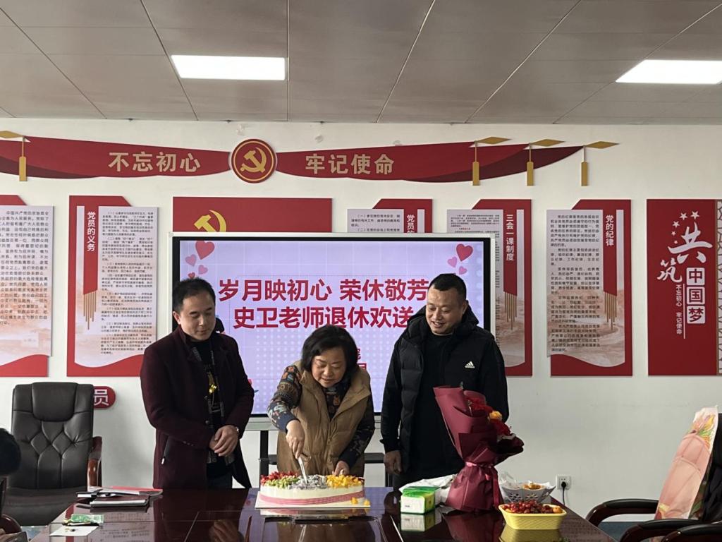 马俊首先用一段话语回顾了史卫老师的教研历程。初来之时尚年少,挥别已是鬓微霜。并表示,史卫老师即将开启人生的全新篇章。退休不是离开,而是彼此都多了一份牵挂。老教师是我们的宝贵财富,是年轻教师奋发向上的精神动力。希望大家在享受美好的退休生活同时,一如既往地关心和支持学校和学院发展,继续提携晚辈后学,引领和帮扶青年成长。并表示学院也将用心用情为退休教职工做好服务工作。随后sunbet申搏官方网站综合办公室主任吴荣叶和sunbet申搏官方网站团学办公室主任马俊向史卫老师献予鲜花和礼物大礼包。学院还为史卫老师准备了蛋糕,大家一起分享蛋糕。