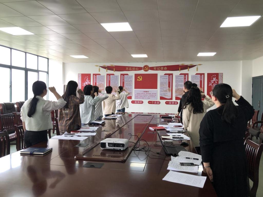 活动最后,为增强爱国爱党情怀,全体党员面对鲜艳庄重的党旗,高举右手,握拳宣誓,重温入党誓词。