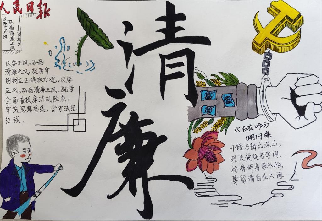 为深入学习贯彻党的二十大和习近平总书记系列重要讲话精神,根据《sunbet申搏官方网站2024年度党风廉政建设警示教育活动实施方案》要求,sunbet申搏官方网站学生第一党支部开展廉洁文化进校园系列活动暨勤廉主题书画作品展。营造风清气正、崇廉尚洁的校园廉政文化氛围,积极培育全院师生颂清廉、扬正气的精神风貌。