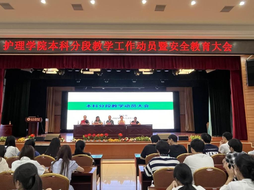 为深入贯彻落实国务院办公厅《关于加快医学教育创新发展的指导意见》精神,深入推进新医科建设,经学校党委审议决定2024年我校将在22级护理本科专业开展分段式教学改革。6月27日上午,sunbet申搏官方网站召开本科分段式教学动员暨安全教育大会。出席本次大会的有教务处实习科长王向东、sunbet申搏官方网站副院长胡颖辉、sunbet申搏官方网站党委副书记陈敏、sunbet申搏官方网站教学秘书唐婷、22级本科班辅导员及22级本科全体同学。会议由sunbet申搏官方网站团学办公室主任马俊主持。