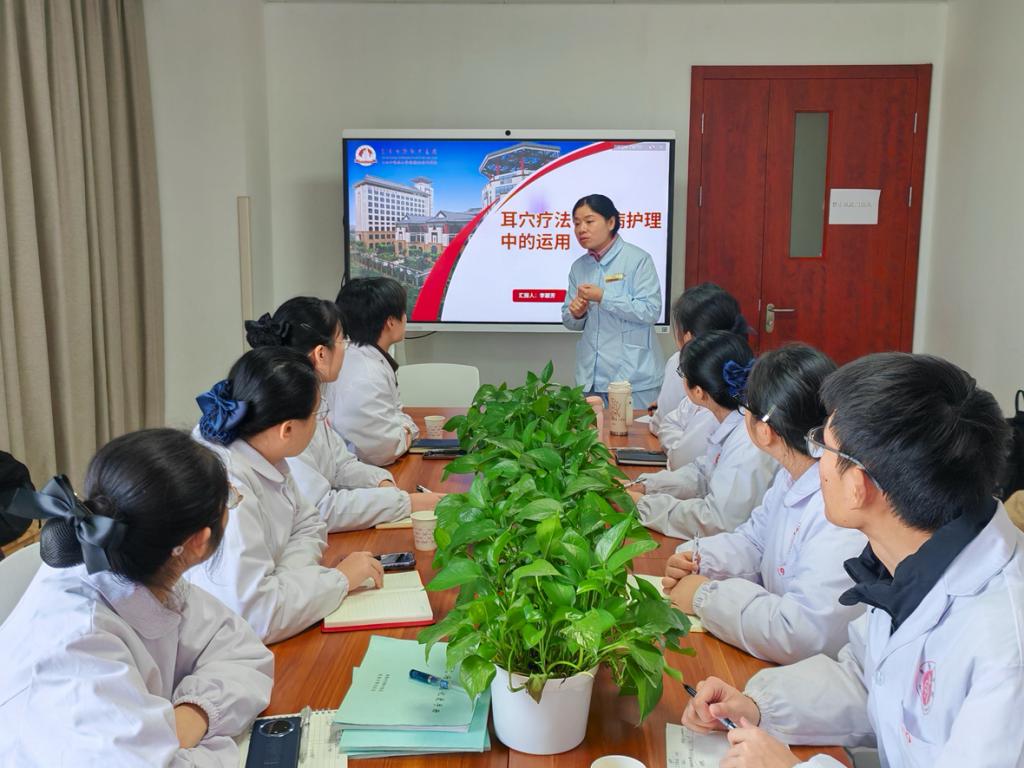 实践首日,护理部主任带领同学们开启“中医文化启蒙之旅”。从门诊大厅的特色文化廊出发,大家逐一学习二十四节气养生智慧、五行五味对应规律,在图文并茂的展示中感悟中医“天人相应”的核心思想;随后走访三大实践科室,提前熟悉各科室诊疗特色与护理重点,为后续学习筑牢认知基础。当日上午,专题理论课同步开讲,老师们系统讲解拔罐、耳穴压豆的操作原理与辨证要点,从穴位定位到禁忌事项,层层拆解专业知识,为同学们的临床实操扫清障碍。