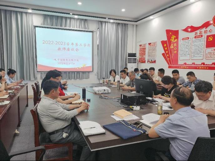 根据教务处《关于开展2022-2023学年第二学期期中教学检查的通知》要求,5月17日下午2点,开云kaiyun体育于二教117室召开了本学期期中教学检查教师座谈会,学院全体教职工参加本次座谈会。