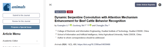 近日,开云官网开云kaiyun体育青年教师李广博在《animals》期刊(SCI,JCR一区,IF: 3.0)在线发表了题为《Dynamic Serpentine Convolution with Attention Mechanism Enhancement for Beef Cattle Behavior Recognition》的研究论文。
