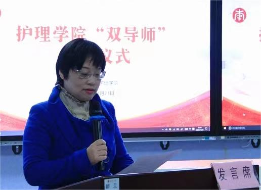 为进一步改革护理本科人才培养模式,推动“双导师制”各项工作落到实处,11月21日中午,sunbet申搏官方网站在1号实训楼411智慧教室隆重举行了“双导师”聘任仪式。sunbet申搏官方网站党委委员、副校长赖国文,sunbet申搏官方网站副院长胡颖辉,sunbet申搏官方网站党委副书记陈敏出席聘任仪式,sunbet申搏官方网站第一附属医院护理部主任刘琳、sunbet申搏官方网站第二附属医院护理部主任洪金花等临床导师代表、全体专业导师及学生代表100余人参加了聘任仪式。