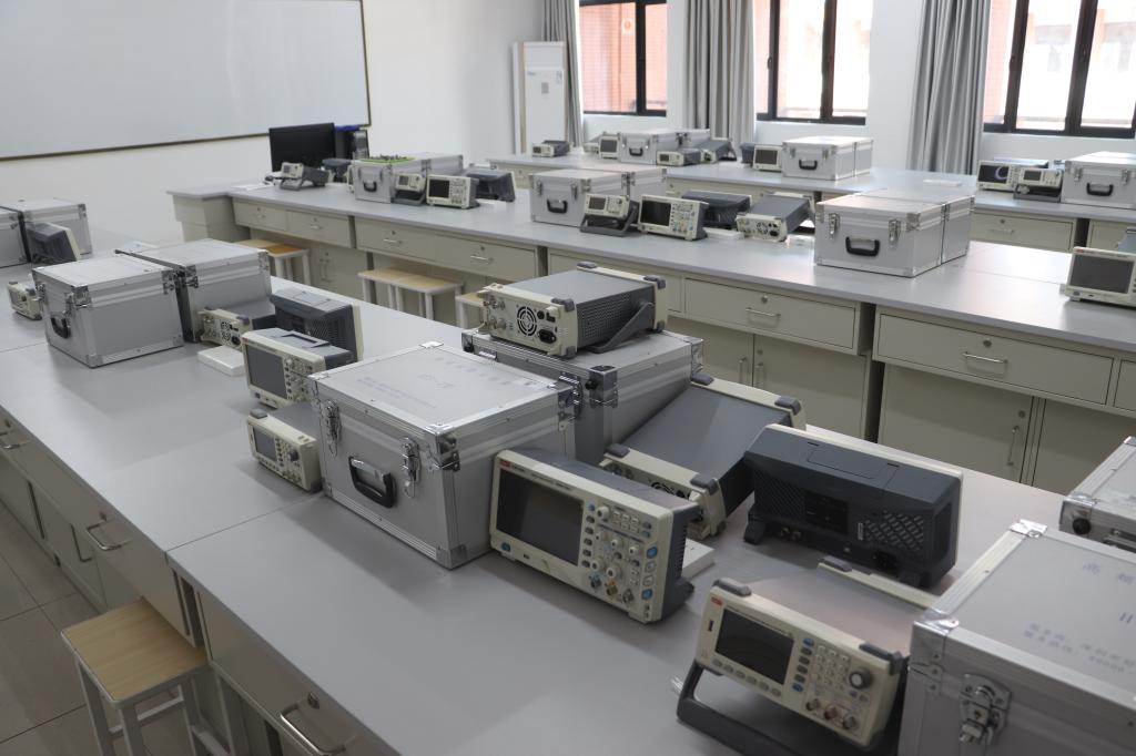 高频电子线路实验室建于2021年,并在2023年改造,目前占地面积81平方米,是一个基于射频电路、无线通信硬件的专业实验平台,通过对振荡器、混频器、高频放大器及调制解调电路的搭建与测试,让学生掌握高频电路设计、阻抗匹配与噪声抑制技术,在此基础上,认识5G毫米波与卫星通信的硬件实现路径,培养学生具备运用射频知识解决无线系统关键问题的能力,为学生在通信硬件研发中的技能进阶提供关键技术支撑。