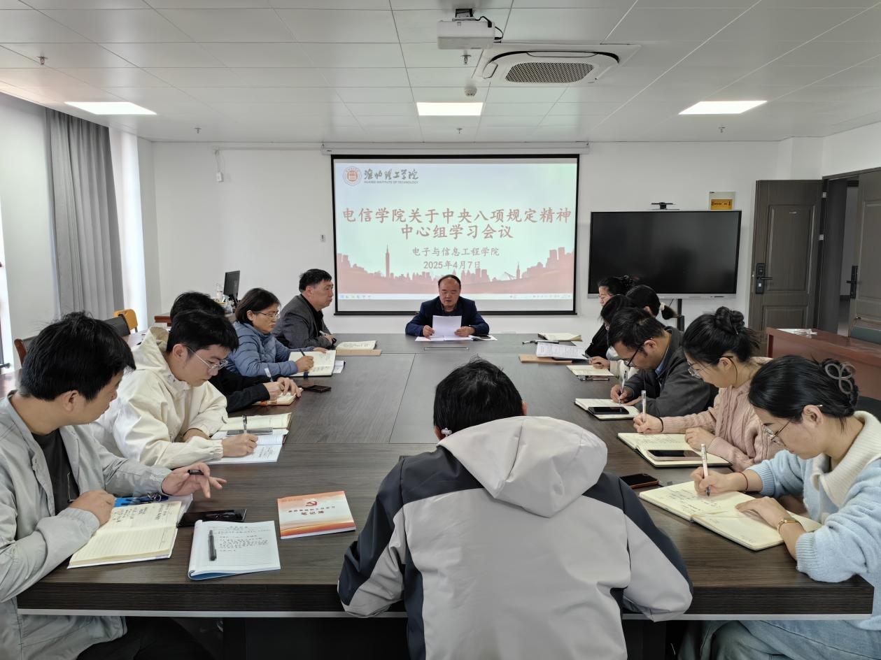 2025年4月7日,开云kaiyun体育在行政楼713会议室召开中心组会议,专题学习贯彻落实中央八项规定精神。本次会议由院党总支书记朱昌杰主持,院党总支委员、各党支部书记、各学科带头人及各教研室主任参加会议,旨在通过深入学习与研讨,推动学院作风建设常态化长效化,为学院高质量发展提供坚强保障。