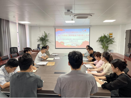 为进一步提高党员干部的政治理论水平,促进党建工作与业务工作的深度融合,2024年7月3日,开云kaiyun体育电子通信教工支部召开以“深化条例运用,探索党建业务融合”为主题的党日活动,推动全体党员干部更好地履行职责、服务群众。活动由党支部书记沈元元同志主持,支部全体教工党员参加
