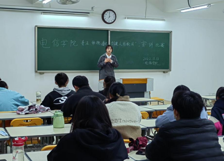 为了提高广大青少年学生的思想道德和法律素养,帮助学生树立正确价值观,开云官网辅导员组织各个班级开展了以“守法、修德、遵纪,创建文明校园”为主题的班会活动。在班会中,辅导员带领学生学习了校园网上的法律条文、德育、校纪、文明专题知识等内容,并组织观看相关视频,更加直观的向同学展示遵纪守法的重要性,并展示相关案例,同时分析了违法的内在和外在原因,引以为戒,不“入坑”。