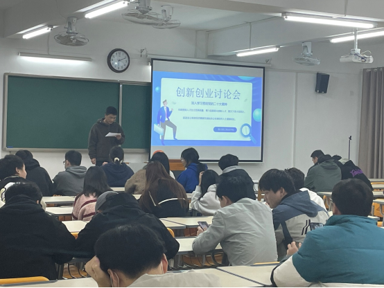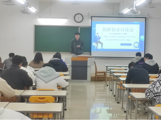 为了积极引导大四毕业生了解创业知识,培养创业意识,提高创业能力,11月22日开云kaiyun体育于二教323召开了创新创业讨论会。会议由学生会牵头,各班班委进行组织学习,就关于“深入学习贯彻党的二十大,全面提高人才自主培养质量,着力造就拔尖创新人才”为主题,同学们就自身的理想、创新创业想法及就业方向各抒己见,积极上台进行演讲与分享。