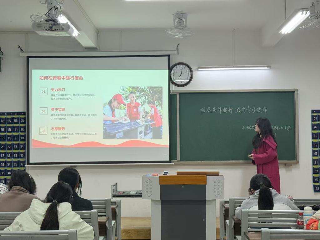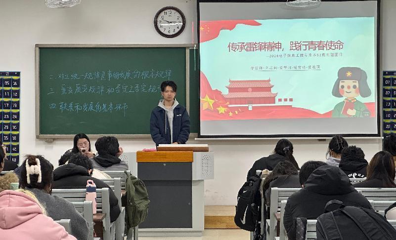 活动期间,各班级团支部召开主题团课。团支书们在会上为同学们重点阐释了雷锋精神的深刻内涵,重温了雷锋的经典事迹。在互动环节,团员们纷纷踊跃分享了自己的“学雷锋”故事。团支书们还特别强调,青年们应将雷锋精神切实融入日常,从自身点滴小事做起,从当下即刻行动,持续不断地奉献自己的青春力量,以实际行动诠释青春担当,努力践行雷锋精神。