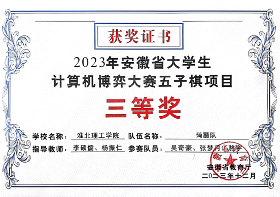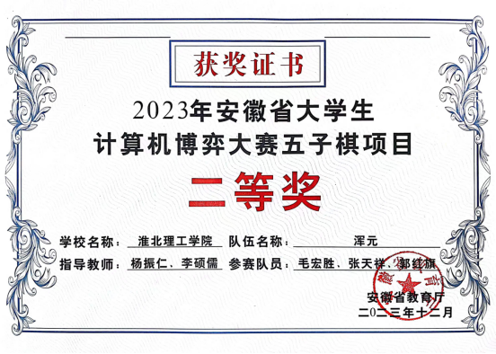 近日,安徽省大学生计算机博弈大赛(安徽省大学生学科和技能竞赛B类项目)在安徽大学举办,开云官网开云kaiyun体育计算机科学与技术专业学生首次参加此项比赛,取得二等奖1项、三等奖1项的好成绩。